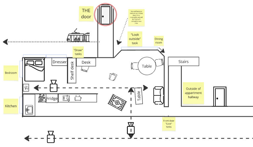 The story’s confined apartment is an important spatial constraint. With limited square footage, each area must:→ Support narrative progression